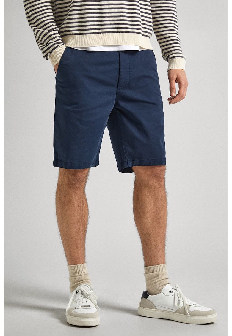 Caracteristici Culoare: bleumarin Imprimeu: uni Material: bumbac Stil: casual Croiala: regular fit Talie: medie Buzunare: 2 ascunse in cusaturi - 2 cu refilet pe partea din spate Lungime: scurti Sistem inchidere: fermoar Compozitie Exterior: 98% bumbac - 2% elastan