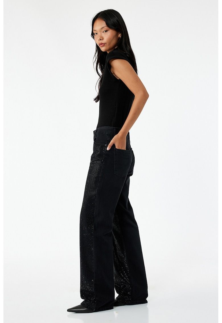 blugi cu aplicatii din strasuri si talie inalta