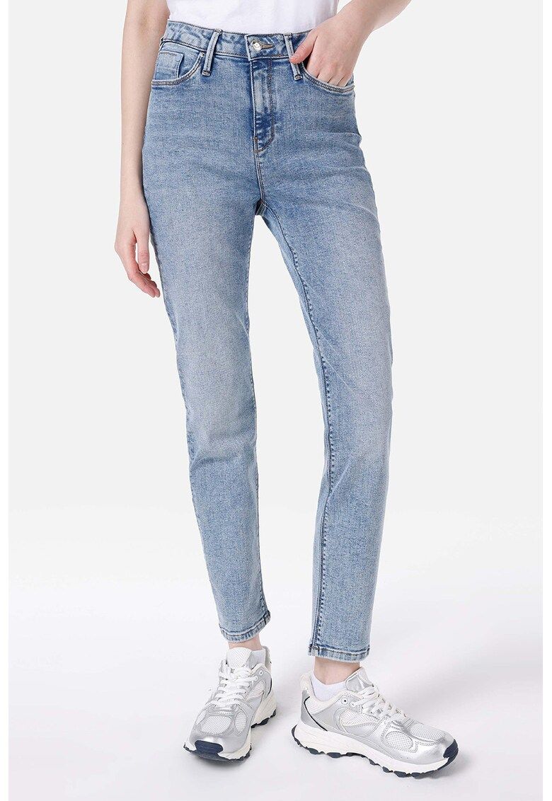 Caracteristici Culoare: albastru deschis Imprimeu: uni Croiala: regular fit Material: denim Talie: medie Lungime: lungi Buzunare: 5 Compozitie Exterior: 98% bumbac - 2% elastan