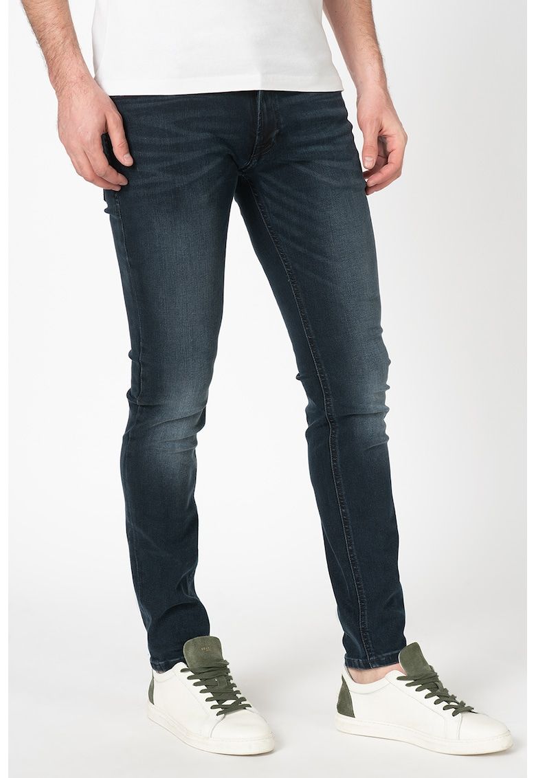 Caracteristici Culoare: bleumarin Material: denim Imprimeu: uni Croiala: skinny Talie: medie Lungime: lungi Buzunare: 5 Sistem inchidere: fermoar - nasturi Linie Brand: jeans intelligence Compozitie Exterior: 70% bumbac - 28% poliester - 2% elastan Info model Modelul poarta un produs de marimea W32-L32. Marimi model: 188 cm inaltime - 96 cm bust - 85 cm talie - 98 cm sold