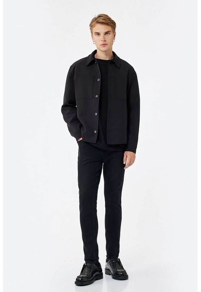 Caracteristici Culoare: negru Imprimeu: uni Croiala: slim fit Material: bumbac - elastan Talie: medie Lungime: lungi Buzunare: 5 Compozitie Exterior: 99% bumbac - 1% elastan