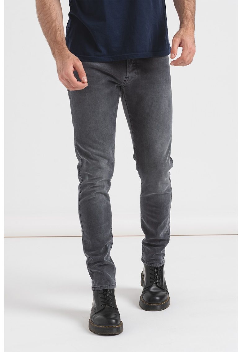 Caracteristici Culoare: gri inchis Material: bumbac organic - denim Imprimeu: uni Croiala: slim fit Talie: medie Lungime: lungi Compozitie Exterior: 97% bumbac organic - 3% elastan Info model Modelul poarta un produs de marimea W32-L32. Marimi model: 189 cm inaltime - 99 cm bust - 76 cm talie - 103 cm sold