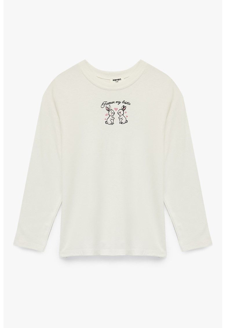Caracteristici Culoare: alb fildes Stil: casual Imprimeu: grafic Material: bumbac Croiala: regular fit Decolteu: rotund Lungime maneca: maneca lunga Compozitie Exterior: 100% bumbac