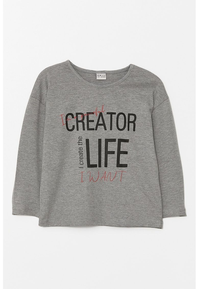 bluza cu imprimeu text si maneci cazute