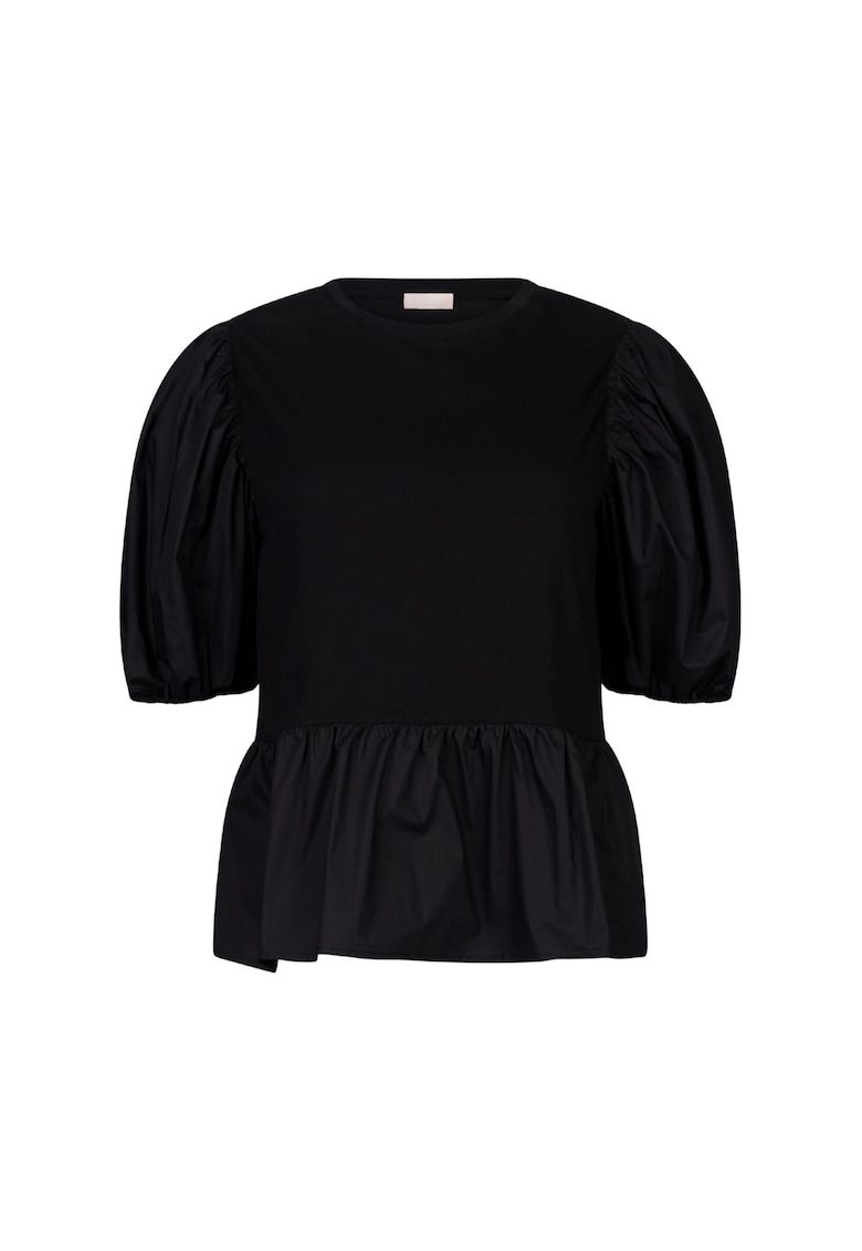 Caracteristici Culoare: negru Imprimeu: uni Stil: casual Croiala: regular fit Sistem inchidere: fara inchidere Material: bumbac Decolteu: rotund Maneci: bufante Lungime maneca: maneca trei sferturi Compozitie Exterior: 100% bumbac