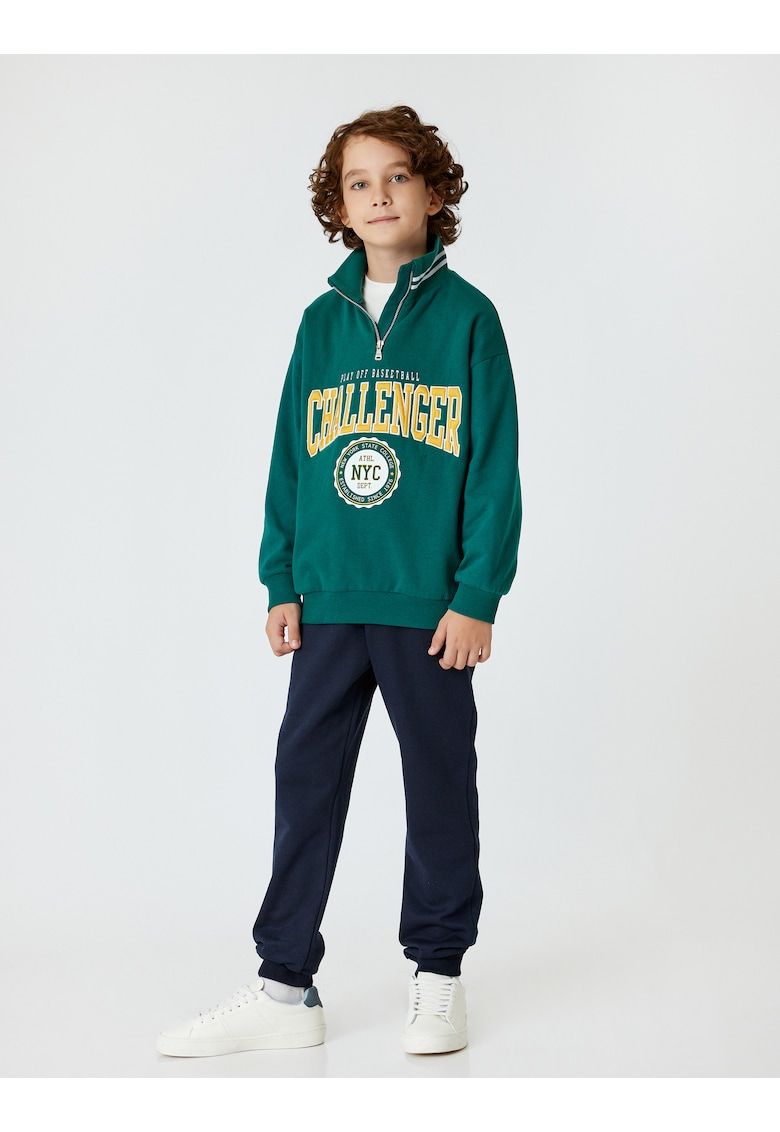 bluza de trening cu imprimeu text si fenta cu fermoar