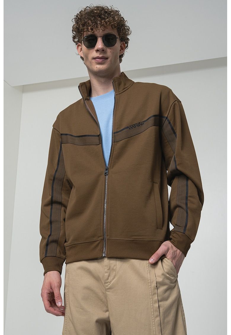 Caracteristici Tip produs: bluza de trening Culoare: maro Imprimeu: uni Material: sintetic - bumbac Croiala: regular fit Sistem inchidere: fermoar Lungime maneca: maneca lunga Compozitie Exterior: 52% bumbac - 48% poliester reciclat Info model Modelul poarta un produs de marimea M. Marimi model: 190 cm inaltime - 91 cm bust - 78 cm talie - 98 cm sold