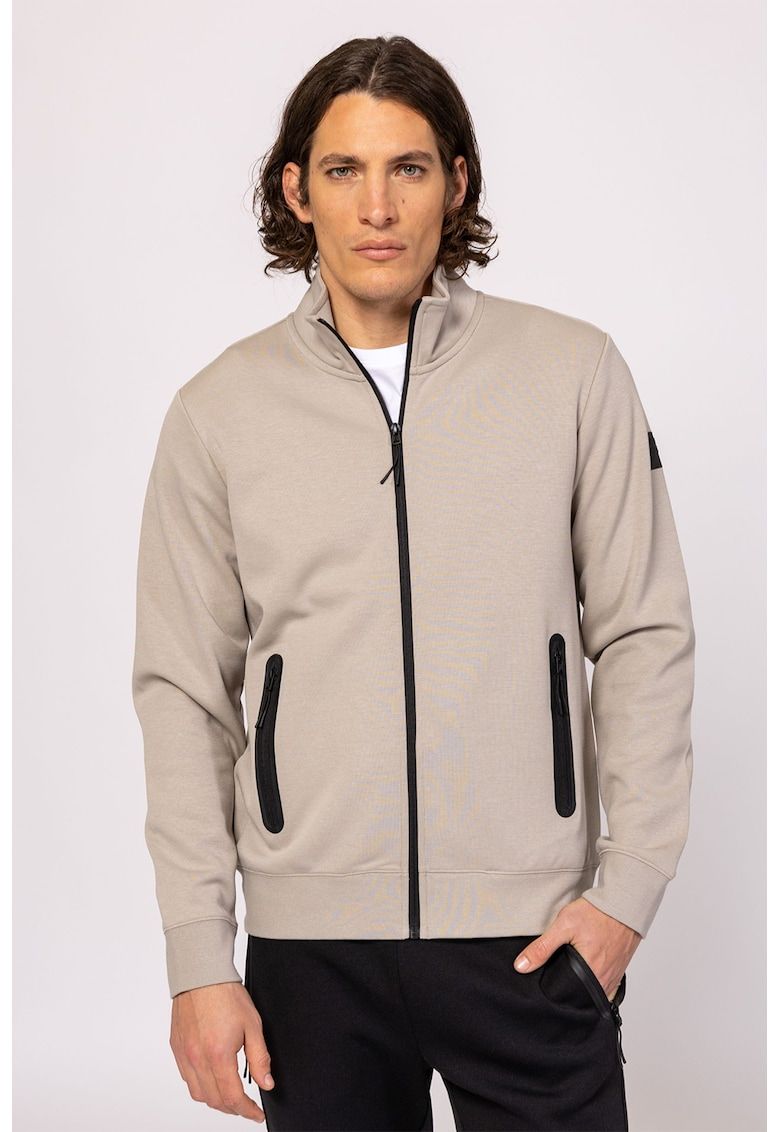 Caracteristici Tip produs: bluza de trening Culoare: maro nisip Imprimeu: uni Material: poliester - bumbac Croiala: regular fit Sistem inchidere: fermoar Buzunare: 2 laterale Lungime maneca: maneca lunga Compozitie Exterior: 72% bumbac - 28% poliester