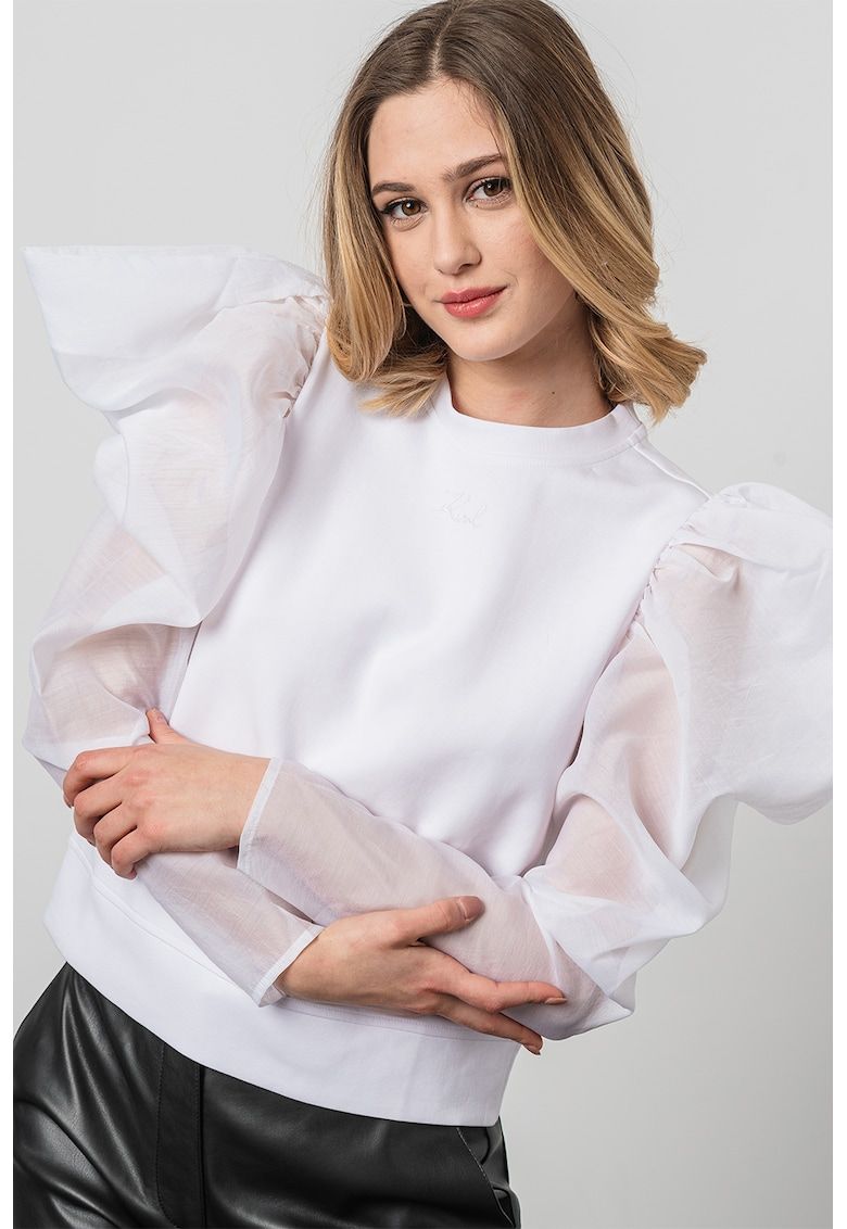 Caracteristici Culoare: alb optic Imprimeu: uni Stil: casual Croiala: regular fit Material: bumbac Decolteu: la baza gatului Maneci: bufante Lungime maneca: maneca lunga Compozitie Exterior: 75% bumbac - 18% poliamida - 7% elastan Info model Modelul poarta un produs de marimea S. Marimi model: 178 cm inaltime - 82 cm bust - 62 cm talie - 93 cm sold