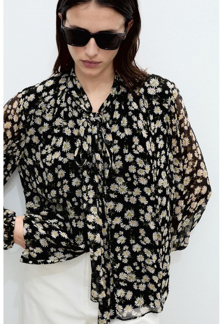Caracteristici Culoare: galben pal - negru stins Imprimeu: floral Stil: elegant Croiala: lejer Sistem inchidere: fara inchidere Material: viscoza Guler: funda de panglici Lungime maneca: maneca lunga Compozitie Exterior: 100% viscoza