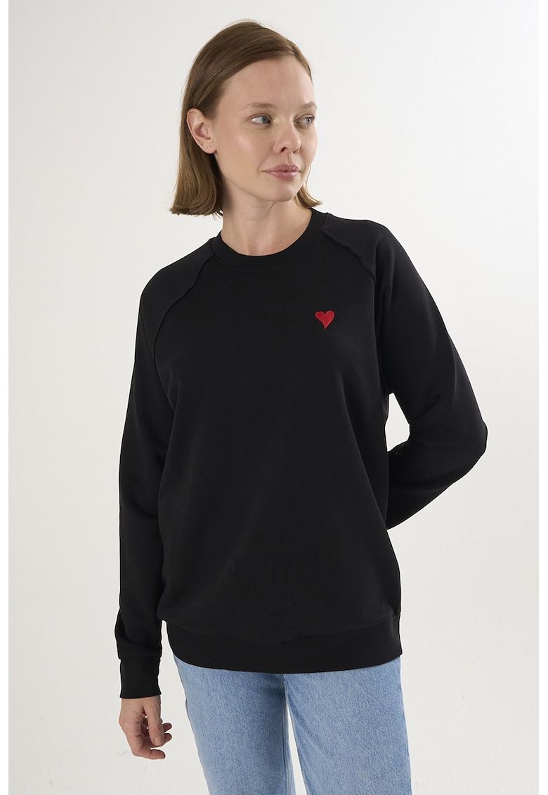 Caracteristici Tip produs: bluza de trening Culoare: negru Imprimeu: uni Croiala: lejer Sistem inchidere: fara inchidere Material: bumbac Maneci: raglan Lungime maneca: maneca lunga Compozitie Exterior: 100% bumbac
