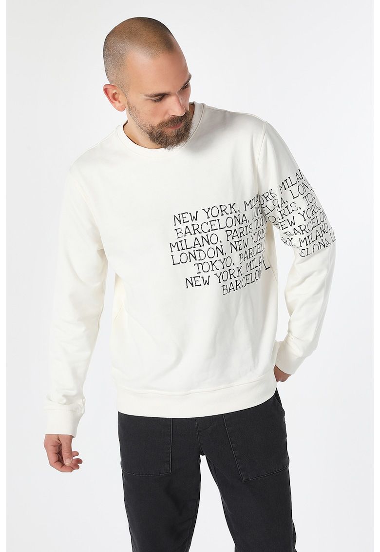 Caracteristici Tip produs: bluza de trening Culoare: alb - negru Imprimeu: text Material: sintetic - bumbac Croiala: regular fit Decolteu: la baza gatului Sistem inchidere: fara inchidere Lungime maneca: maneca lunga Compozitie Exterior: 50% bumbac - 50% poliester