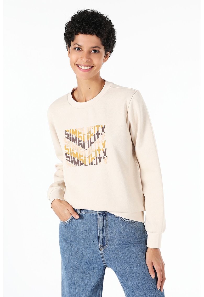 Caracteristici Tip produs: bluza de trening Culoare: bej Imprimeu: text Croiala: regular fit Sistem inchidere: fara inchidere Material: poliester - bumbac Lungime maneca: maneca lunga Compozitie Exterior: 61% bumbac - 39% poliester