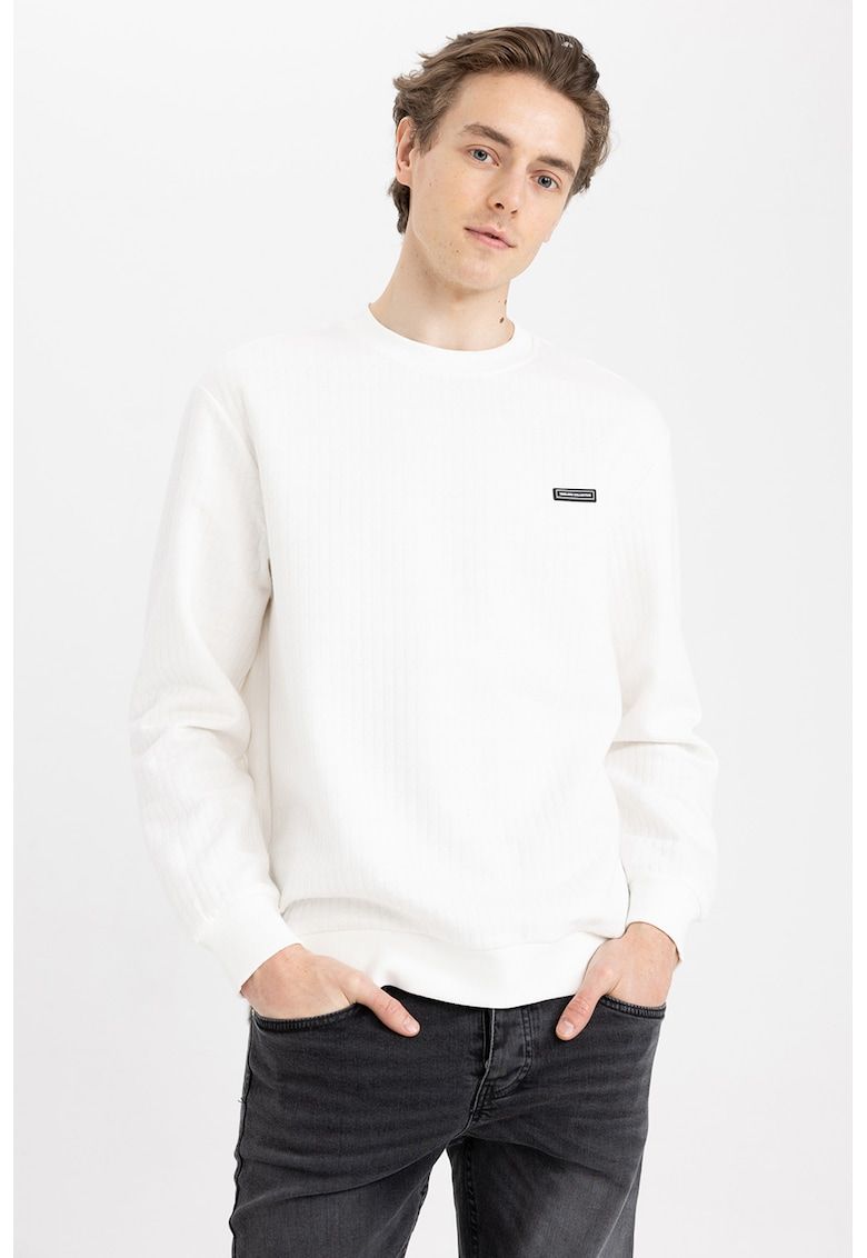 Caracteristici Tip produs: bluza de trening Culoare: alb Imprimeu: uni Material: sintetic - bumbac Croiala: regular fit Decolteu: la baza gatului Sistem inchidere: fara inchidere Lungime maneca: maneca lunga Detalii: aspect texturat Compozitie Exterior: 58% poliester - 42% bumbac