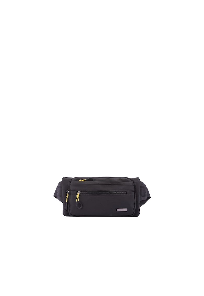 Caracteristici Culoare: negru Stil: casual Imprimeu: logo Material: textil Model: borseta Barete: 1 ajustabila Buzunare: 2 frontale cu fermoar - 1 buzunar in spate cu fermoar Compartimente: 1 principal Sistem inchidere: fermoar Compozitie Exterior: poliester Captuseala: poliester Dimensiuni Dimensiune (cm): 16 x 43 x 6 cm