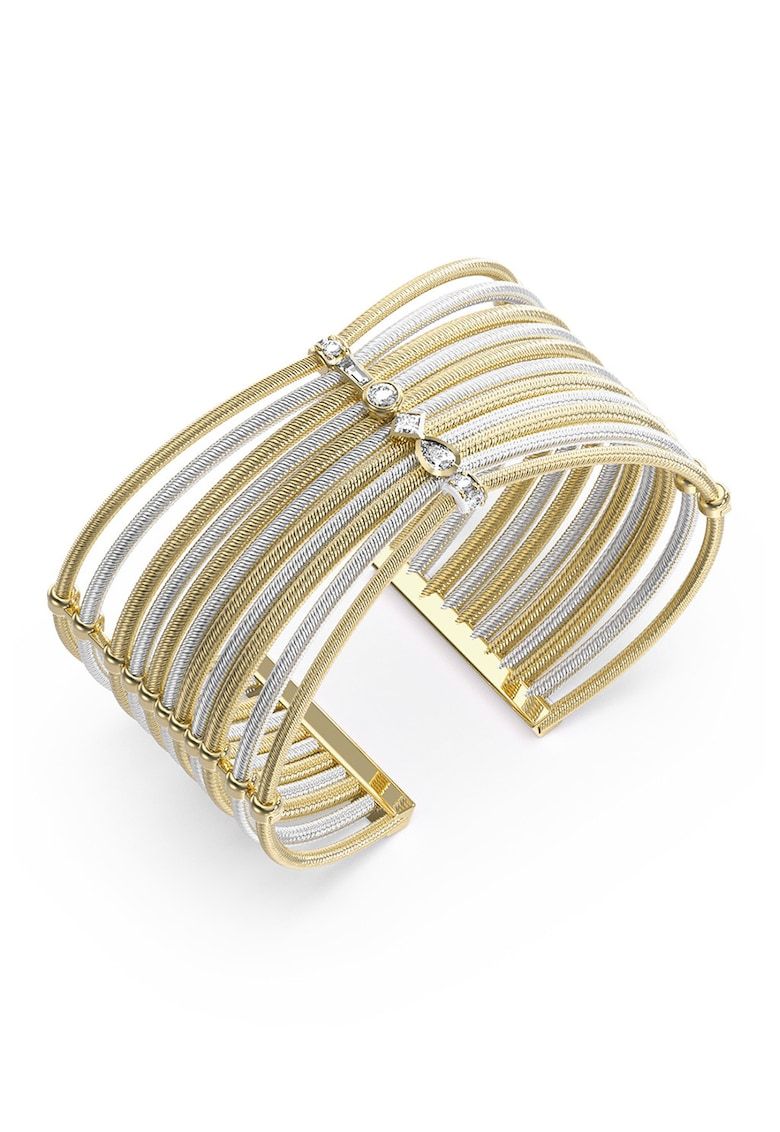 Caracteristici Tip produs: bratara Material: inox Culoare: auriu - argintiu Detalii: decorat cu cristale Sistem inchidere: fara inchidere Ambalaj: produsul se livreaza in ambalaj personalizat. Compozitie Compozitie: inox Pietre: cristale Placaj: ip - rodiu Dimensiuni Latime: 34 mm Informatii suplimentare: a se evita socurile termice si mecanice - zgarierea - contactul cu alcool - parfum - acetona - detergent - suprafete abrazive.