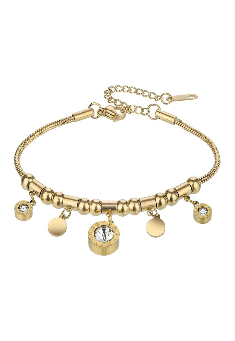 Caracteristici Tip produs: bratara Material: inox Culoare: auriu Detalii: a se evita socurile termice si mecanice - zgarierea - contactul cu alcool - parfum - acetona - detergent - suprafete abrazive. Linie Brand: danielle Ambalaj: produsul se livreaza in ambalaj personalizat. Compozitie Compozitie: otel inoxidabil Pietre: zirconiu Placaj: aur de 18k