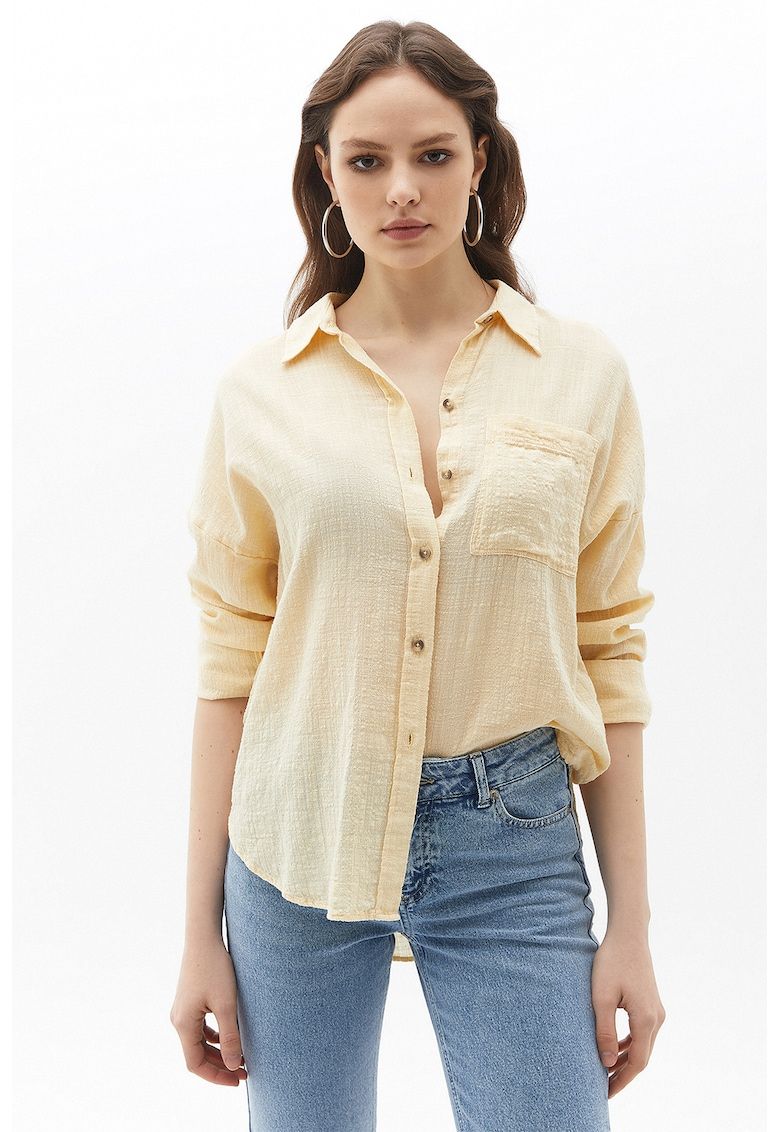 Caracteristici Culoare: portocaliu pal Imprimeu: uni Stil: casual Material: bumbac - viscoza Croiala: regular fit Lungime maneca: maneca lunga Buzunare: pe piept Sistem inchidere: nasturi Compozitie Exterior: 67% bumbac - 33% viscoza