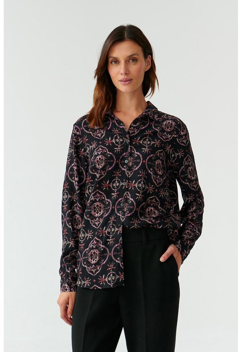 Caracteristici Culoare: rosu - negru Imprimeu: abstract Stil: casual Material: viscoza Croiala: regular fit Lungime maneca: maneca lunga Sistem inchidere: nasturi Compozitie Exterior: 100% viscoza