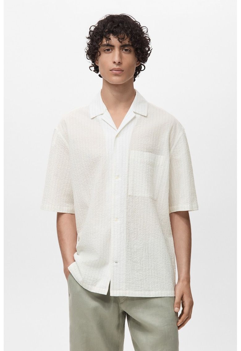 Caracteristici Culoare: alb optic Material: bumbac Imprimeu: dungi Stil: casual Croiala: regular fit Lungime maneca: maneca scurta Buzunare: pe piept Sistem inchidere: nasturi Compozitie Exterior: 99% bumbac - 1% elastan