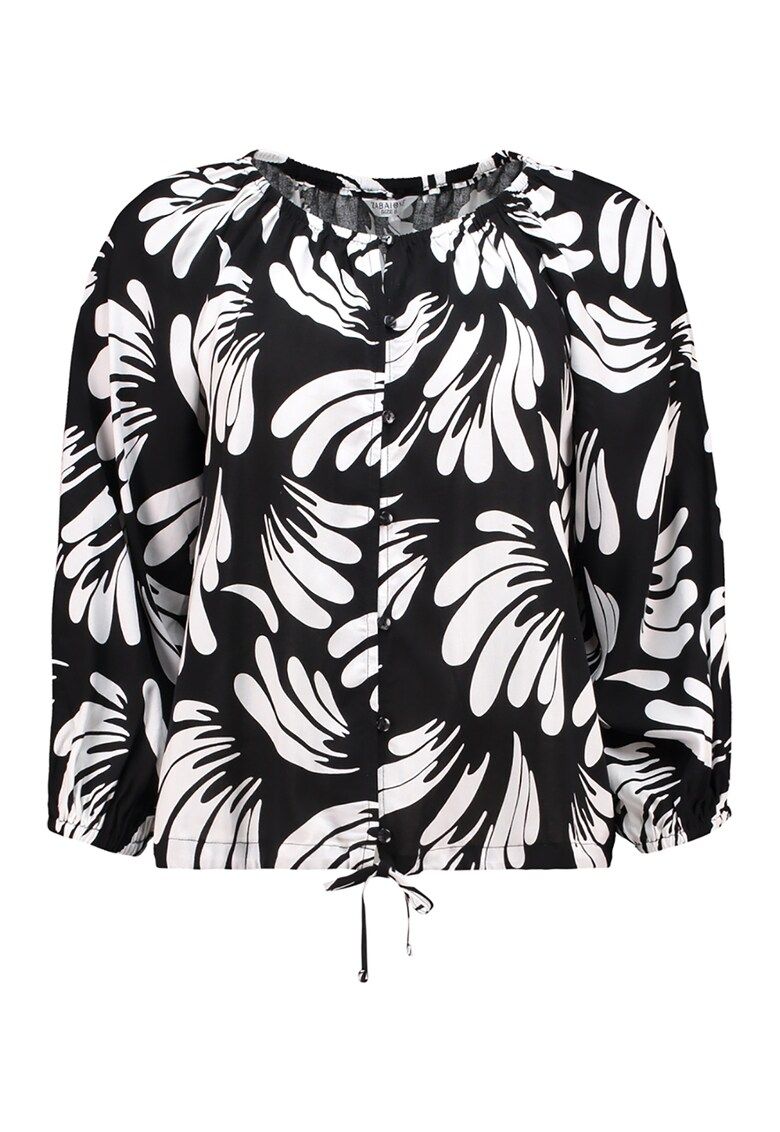 Caracteristici Culoare: negru - alb optic Imprimeu: abstract Stil: casual Material: viscoza Croiala: lejer Lungime maneca: maneca lunga Sistem inchidere: nasturi Compozitie Exterior: 100% viscoza