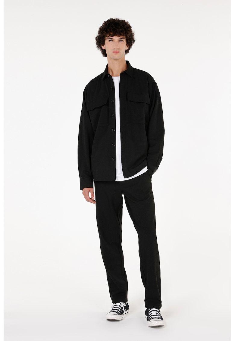 Caracteristici Culoare: negru Material: sintetic - viscoza Imprimeu: uni Stil: casual Croiala: regular fit Lungime maneca: maneca lunga Buzunare: 2 aplicate pe piept Sistem inchidere: nasturi Compozitie Exterior: 63% poliester - 34% viscoza - 3% elastan