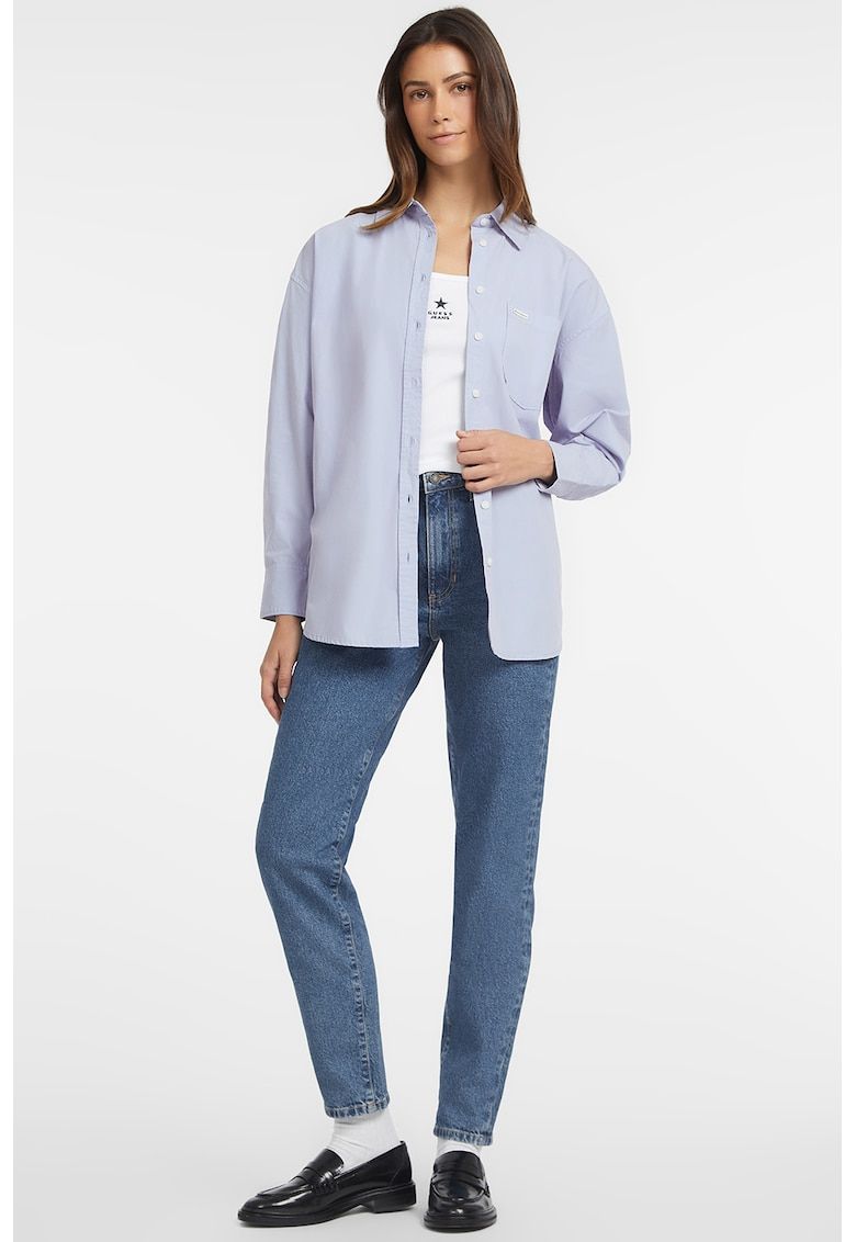 Caracteristici Culoare: albastru azur Imprimeu: uni Stil: casual Material: bumbac Croiala: regular fit Guler: ascutit Lungime maneca: maneca lunga Buzunare: aplicatie frontala Sistem inchidere: nasturi Compozitie Exterior: 100% bumbac