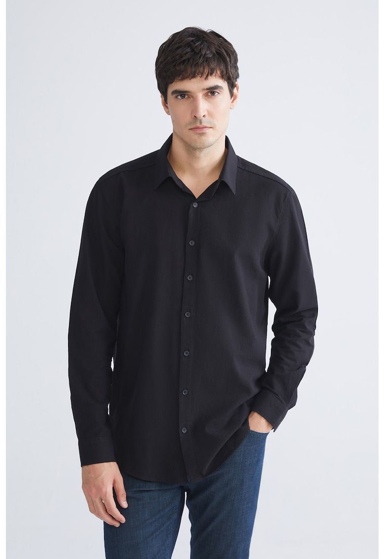 Caracteristici Culoare: negru Material: bumbac Imprimeu: uni Stil: casual Croiala: regular fit Guler: ascutit Lungime maneca: maneca lunga Sistem inchidere: nasturi Compozitie Exterior: 100% bumbac