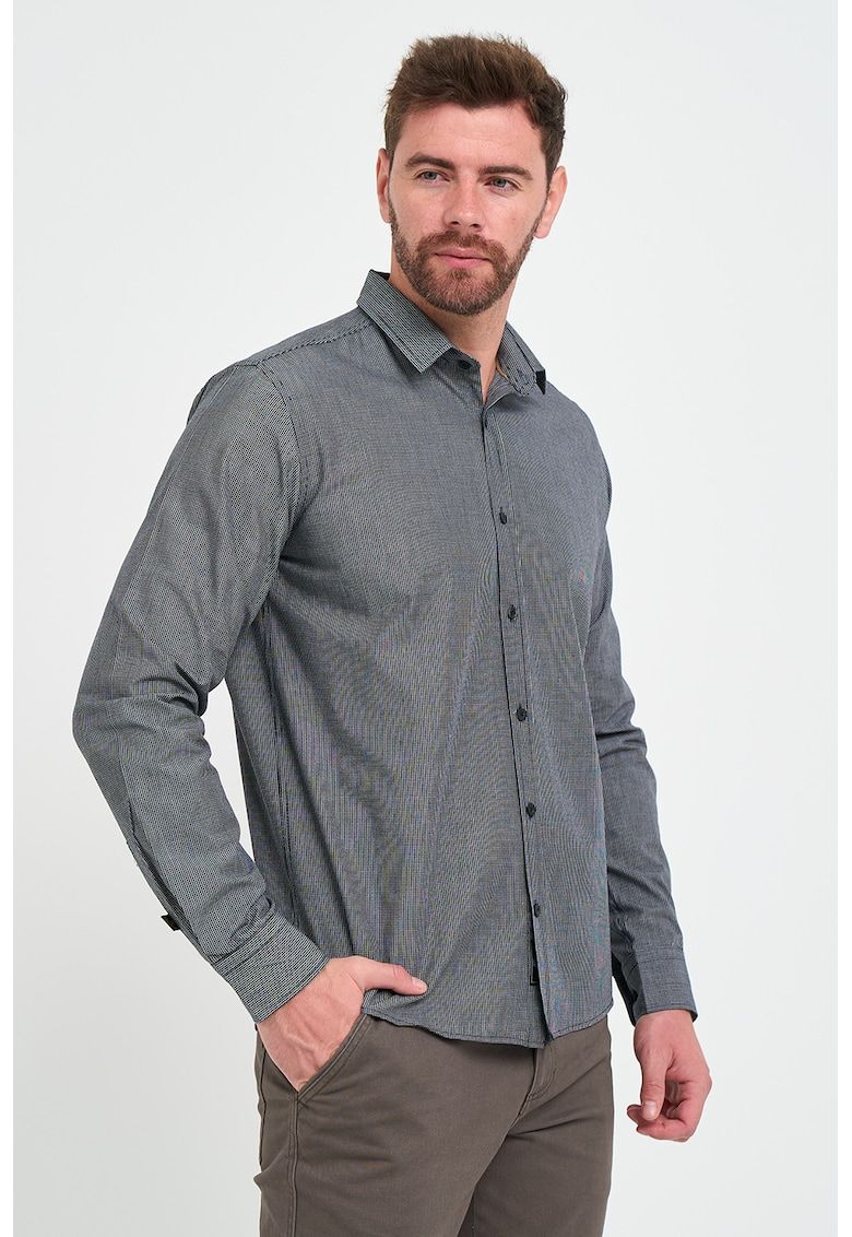 Caracteristici Culoare: negru - alb optic Material: bumbac Imprimeu: uni Stil: elegant Croiala: regular fit Lungime maneca: maneca lunga Sistem inchidere: nasturi Compozitie Exterior: 100% bumbac