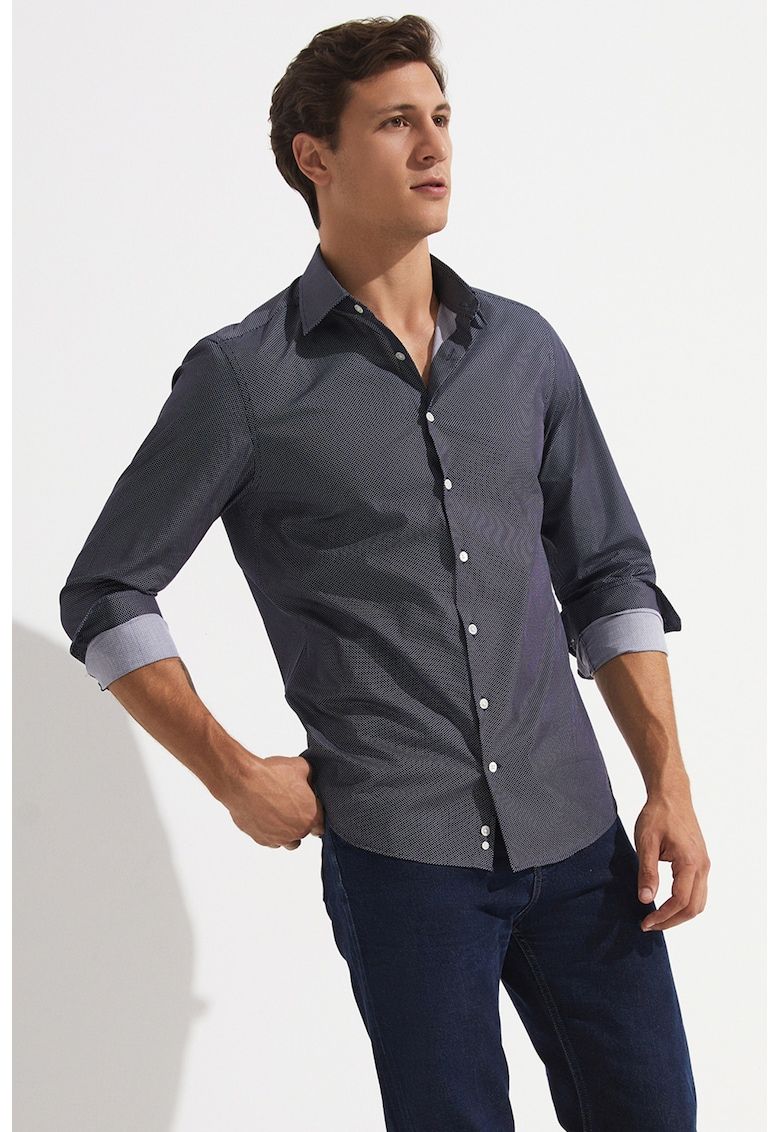 Caracteristici Culoare: bleumarin Material: bumbac Imprimeu: uni Stil: casual Croiala: regular fit Guler: clasic Lungime maneca: maneca lunga Sistem inchidere: nasturi Compozitie Exterior: 100% bumbac