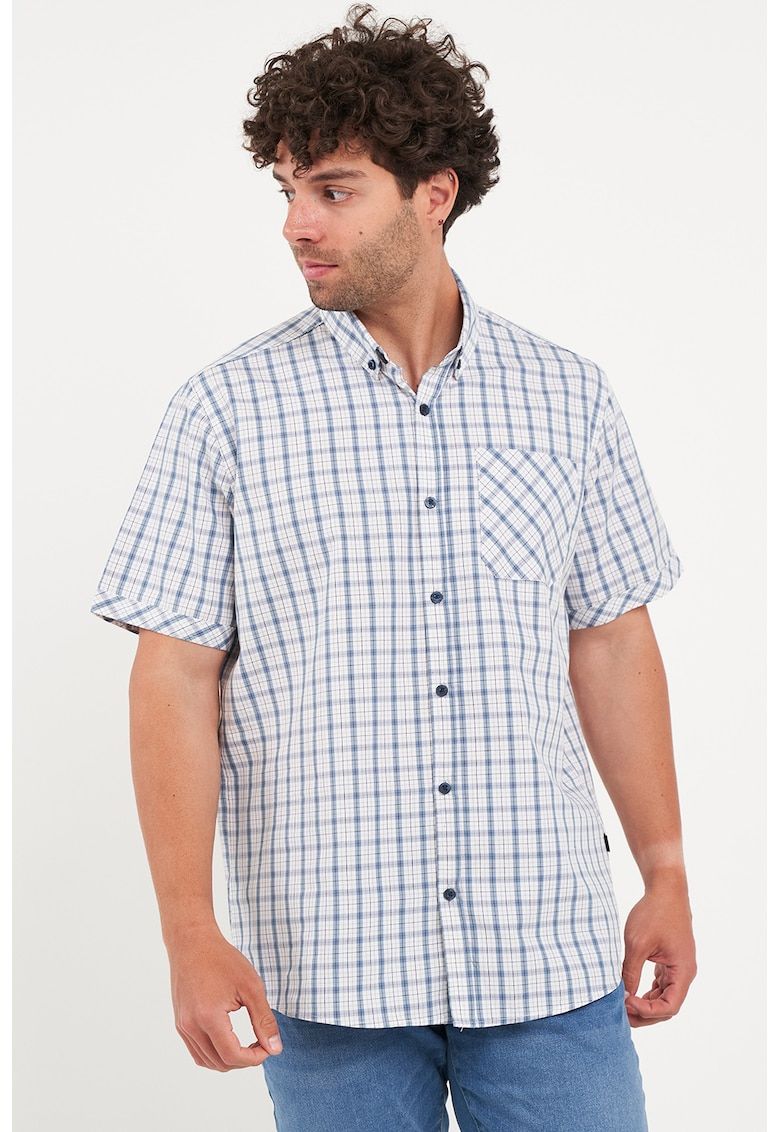 Caracteristici Culoare: alb - albastru Material: bumbac Imprimeu: carouri Stil: casual Croiala: regular fit Guler: fixat cu nasturi Lungime maneca: maneca scurta Buzunare: aplicat pe piept Sistem inchidere: nasturi Compozitie Exterior: 100% bumbac
