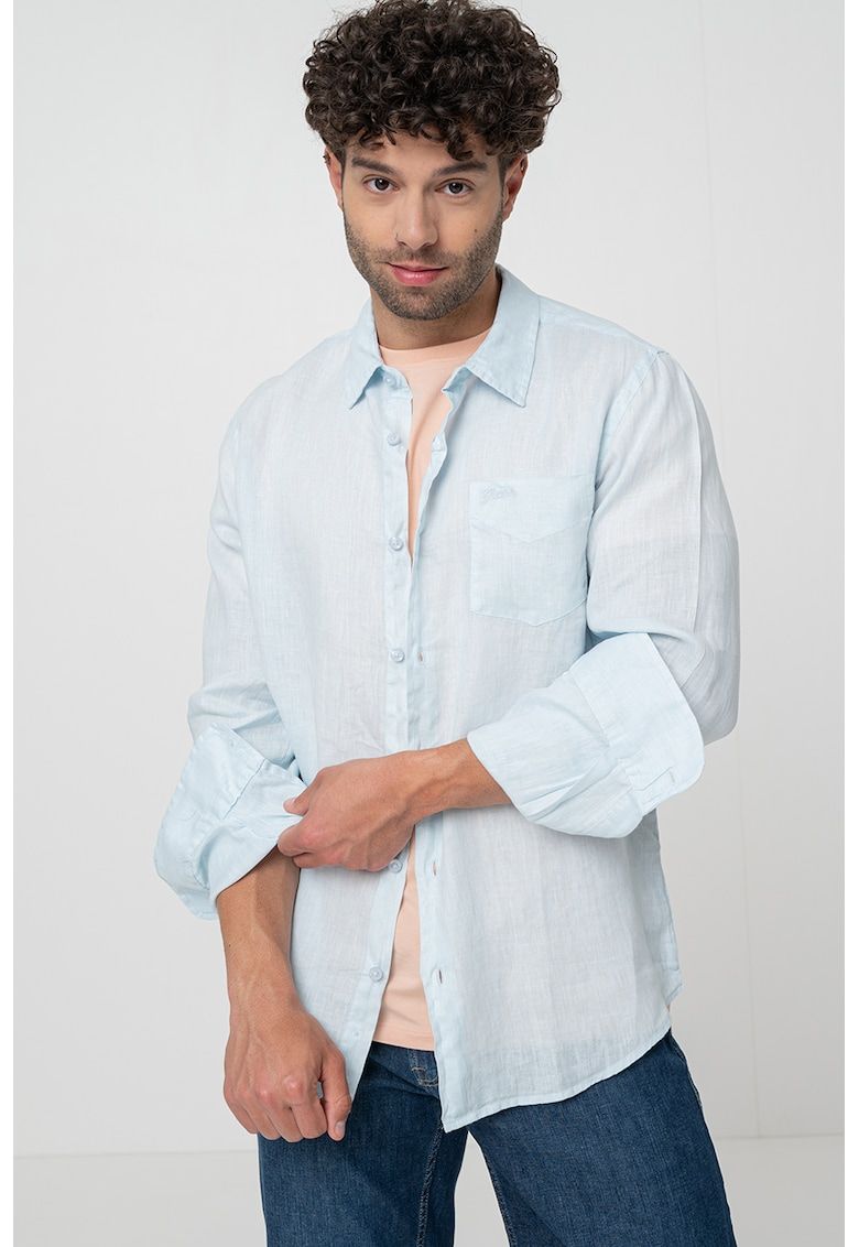 Caracteristici Culoare: albastru glaciar Material: in Imprimeu: uni Stil: casual Croiala: regular fit Guler: clasic Maneci: mansete cu nasturi Lungime maneca: maneca lunga Buzunare: unul - pe piept Sistem inchidere: nasturi Compozitie Exterior: 100% in Info model Modelul poarta un produs de marimea M. Marimi model: 179 cm inaltime - 95 cm bust - 78 cm talie - 96 cm sold