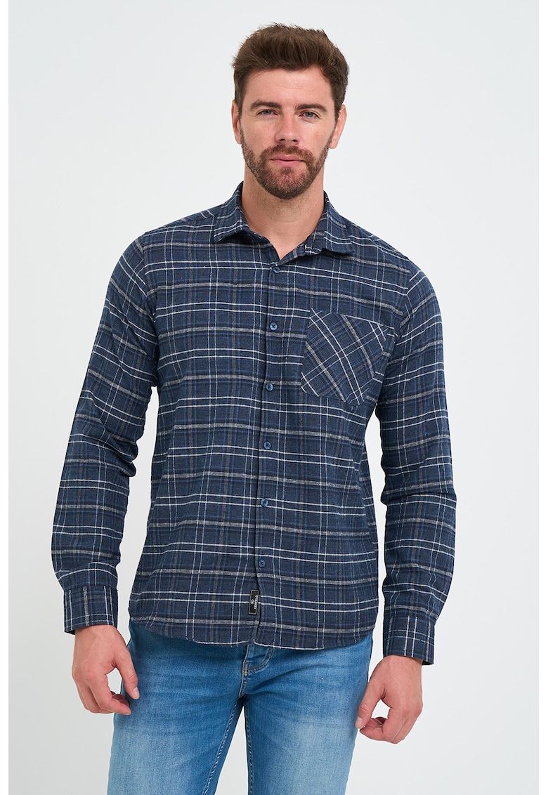 camasa din amestec de bumbac cu buzunar aplicat si model in carouri