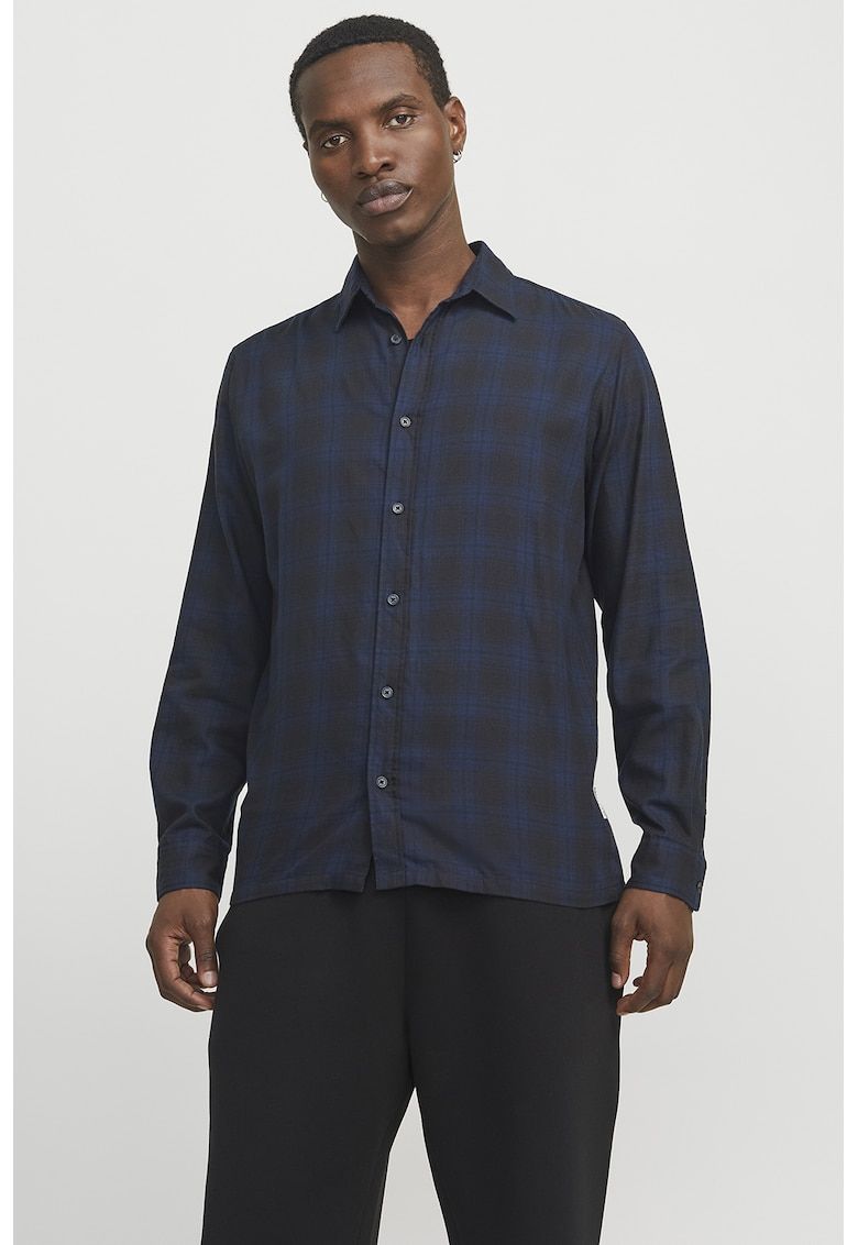 Caracteristici Culoare: bleumarin Material: poliester - bumbac Imprimeu: carouri Stil: casual Croiala: regular fit Guler: ascutit Lungime maneca: maneca lunga Sistem inchidere: nasturi Compozitie Exterior: 60% bumbac - 40% poliester