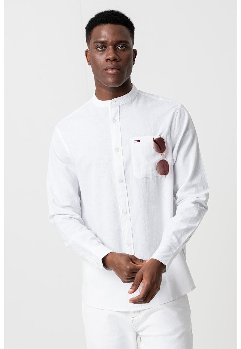 camasa din amestec de bumbac si in cu guler mao