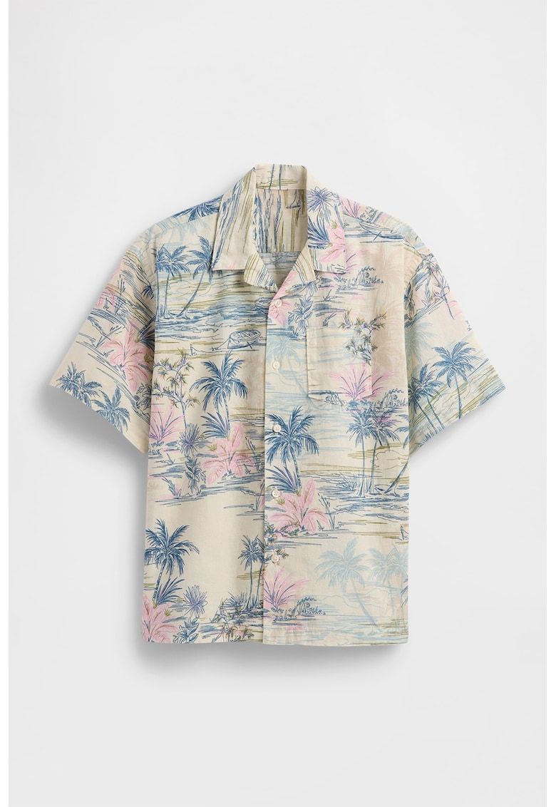 camasa din amestec de in cu maneci scurte si imprimeu tropical