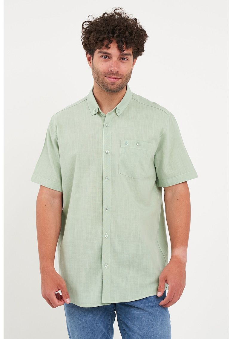 Caracteristici Culoare: verde deschis Material: bumbac Imprimeu: uni Stil: casual Croiala: relaxed fit Guler: fixat cu nasturi Lungime maneca: maneca scurta Buzunare: pe piept Sistem inchidere: nasturi Compozitie Exterior: 100% bumbac