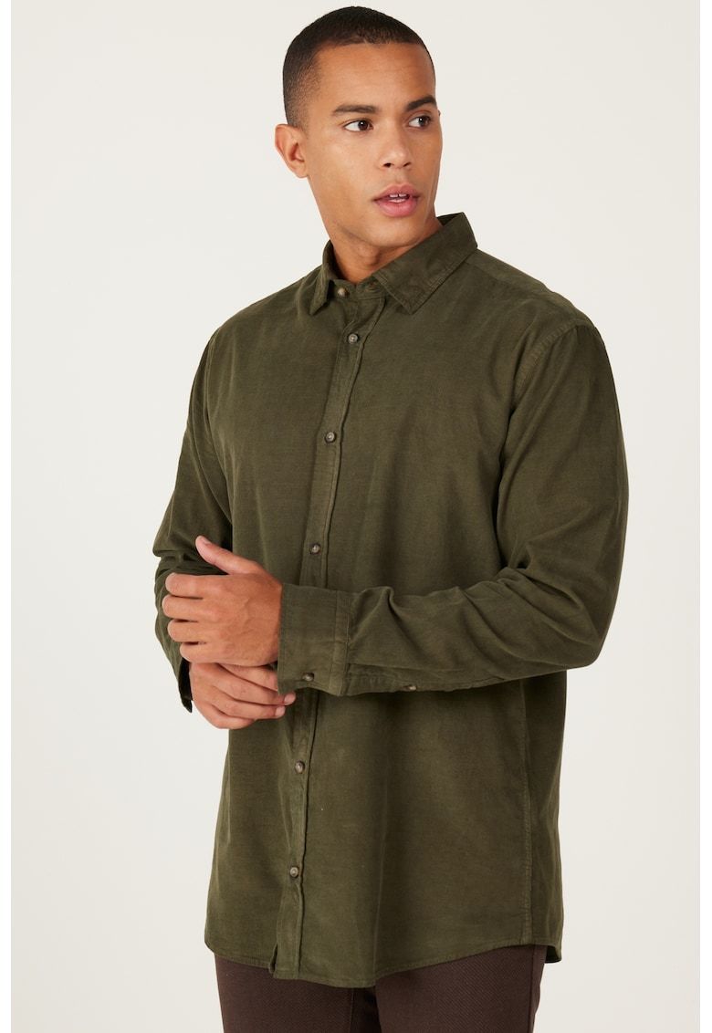 Caracteristici Culoare: verde militar prafuit Material: bumbac Imprimeu: uni Stil: casual Croiala: regular fit Guler: ascutit Lungime maneca: maneca lunga Sistem inchidere: nasturi Compozitie Exterior: 100% bumbac