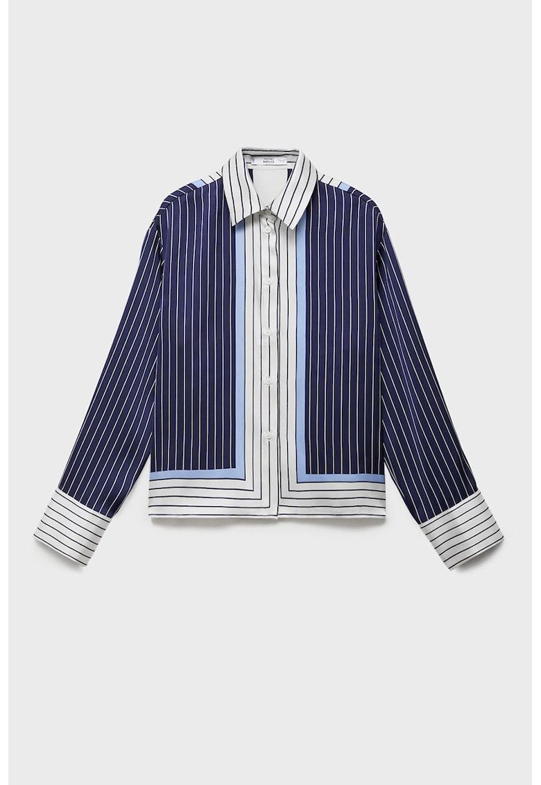 Caracteristici Culoare: alb - albastru inchis Imprimeu: dungi Stil: casual Material: poliester Croiala: lejer Guler: clasic Tip maneca: cu mansete Lungime maneca: maneca lunga Sistem inchidere: nasturi Compozitie Exterior: 100% poliester