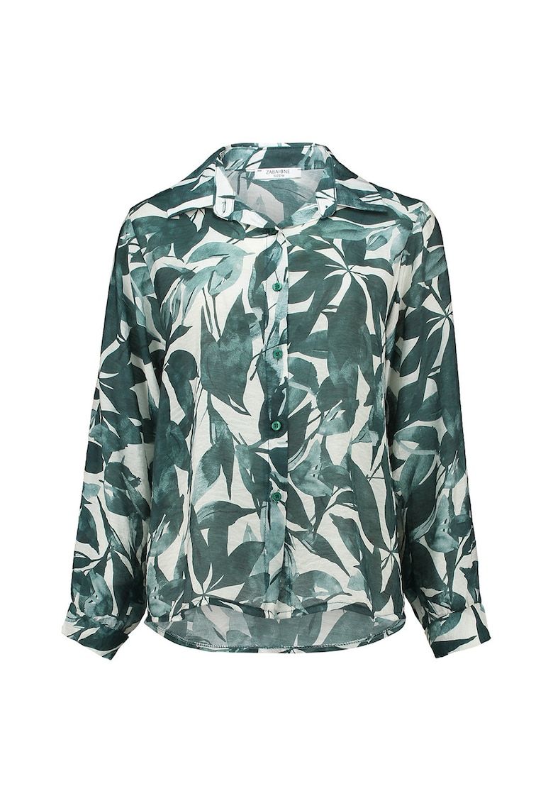 Caracteristici Culoare: alb fildes - verde inchis Imprimeu: grafic Stil: casual Material: viscoza - poliamida Croiala: regular fit Guler: ascutit Lungime maneca: maneca lunga Sistem inchidere: nasturi Compozitie Exterior: 85% viscoza - 15% poliamida