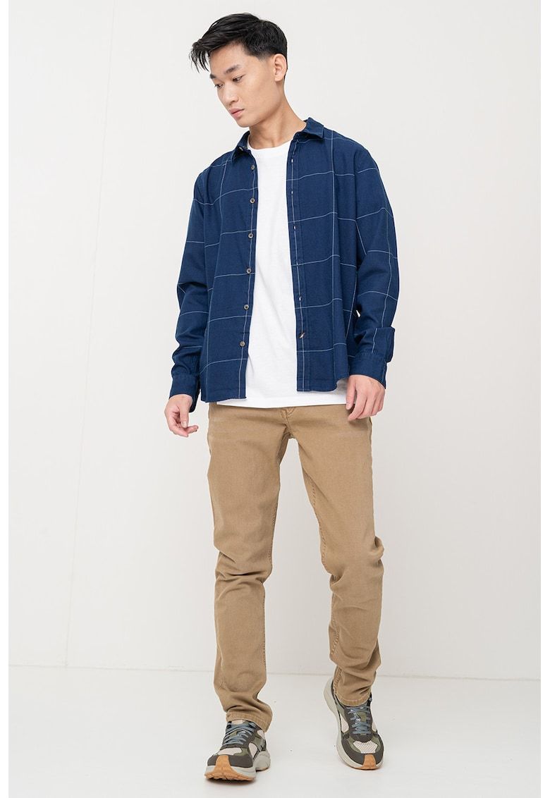 Caracteristici Culoare: albastru Material: bumbac Imprimeu: carouri Stil: casual Croiala: regular fit Guler: ascutit Lungime maneca: maneca lunga Sistem inchidere: nasturi Compozitie Exterior: 100% bumbac Info model Modelul poarta un produs de marimea M. Marimi model: 183 cm inaltime - 96 cm bust - 71 cm talie - 95 cm sold