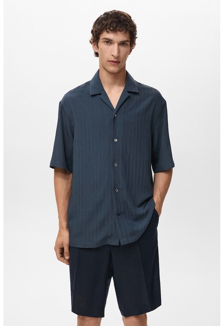 Caracteristici Culoare: bleumarin Material: viscoza - poliamida Imprimeu: dungi Stil: casual Croiala: regular fit Guler: cu revere Lungime maneca: maneca scurta Detalii: model discret Sistem inchidere: nasturi Compozitie Exterior: 87% viscoza - 13% poliamida