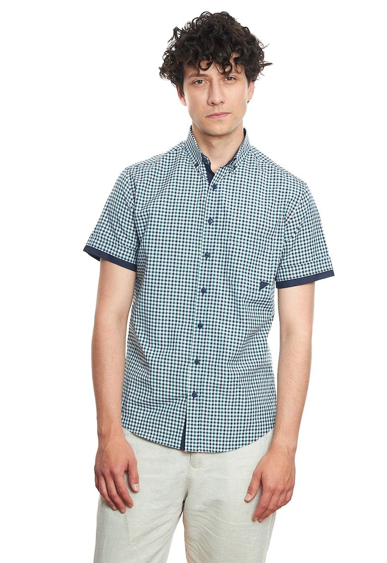 Caracteristici Culoare: alb - verde - bleumarin Material: bumbac Imprimeu: carouri Stil: casual Croiala: slim fit Guler: fixat cu nasturi Lungime maneca: maneca scurta Sistem inchidere: nasturi Compozitie Exterior: 100% bumbac Info model Modelul poarta un produs de marimea M. Marimi model: 184 cm inaltime - 104 cm bust - 84 cm talie - 103 cm sold