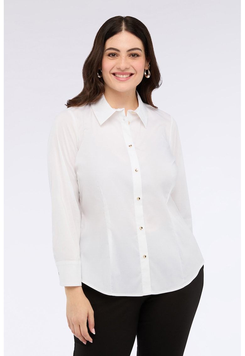 Caracteristici Culoare: alb Imprimeu: uni Stil: casual Material: sintetic - bumbac Croiala: curvy Lungime maneca: maneca lunga Detalii: acest produs se adreseaza femeilor cu forme pline (plus size). Sistem inchidere: nasturi Compozitie Exterior: 68% bumbac - 28% poliamida - 4% elastan