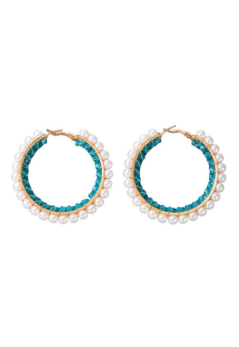 cercei aurii - rotunzi - cu perle si cristale verzi - mandie c12 -