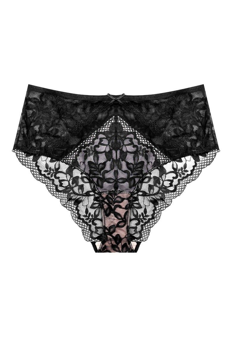 Caracteristici Tip produs: chiloti Culoare: negru Imprimeu: floral Material: poliamida Croiala: curvy Talie: inalta Detalii: cu talie inalta