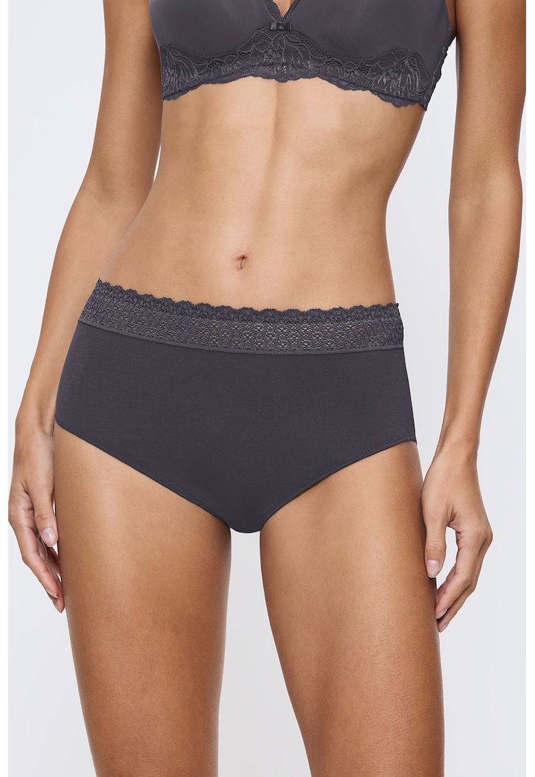 Caracteristici Tip produs: hipster Culoare: gri inchis Imprimeu: uni Material: dantela - modal Numar perechi: 1 Talie: inalta Compozitie Exterior: 87% modal - 13% elastan