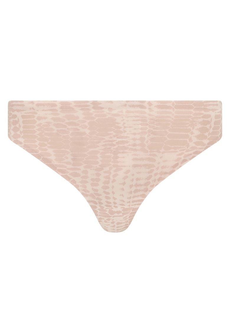 Caracteristici Tip produs: tanga Culoare: roz - crem Imprimeu: animal print Material: sintetic Talie: medie Detalii: model fara cusaturi Compozitie Exterior: poliamida - elastan