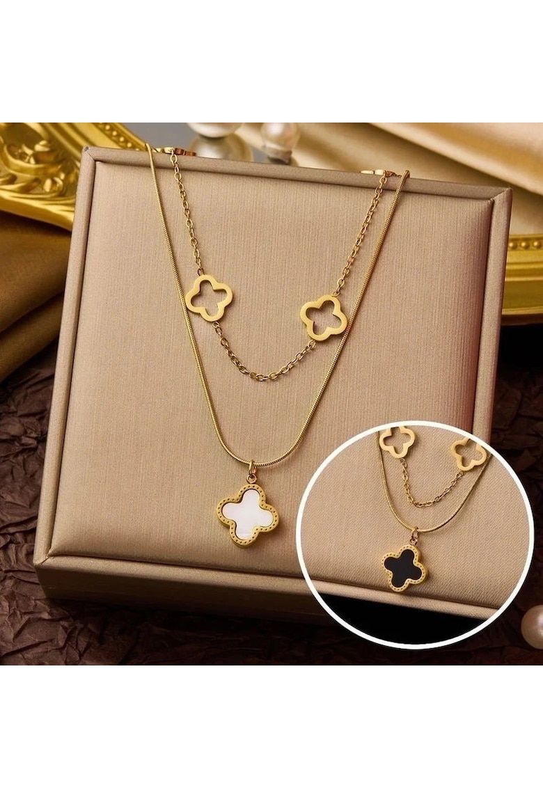 colier auriu - din otel inoxidabil - suflat cu aur 18k - cu piese in forma de trifoi stilizat - inessa c4