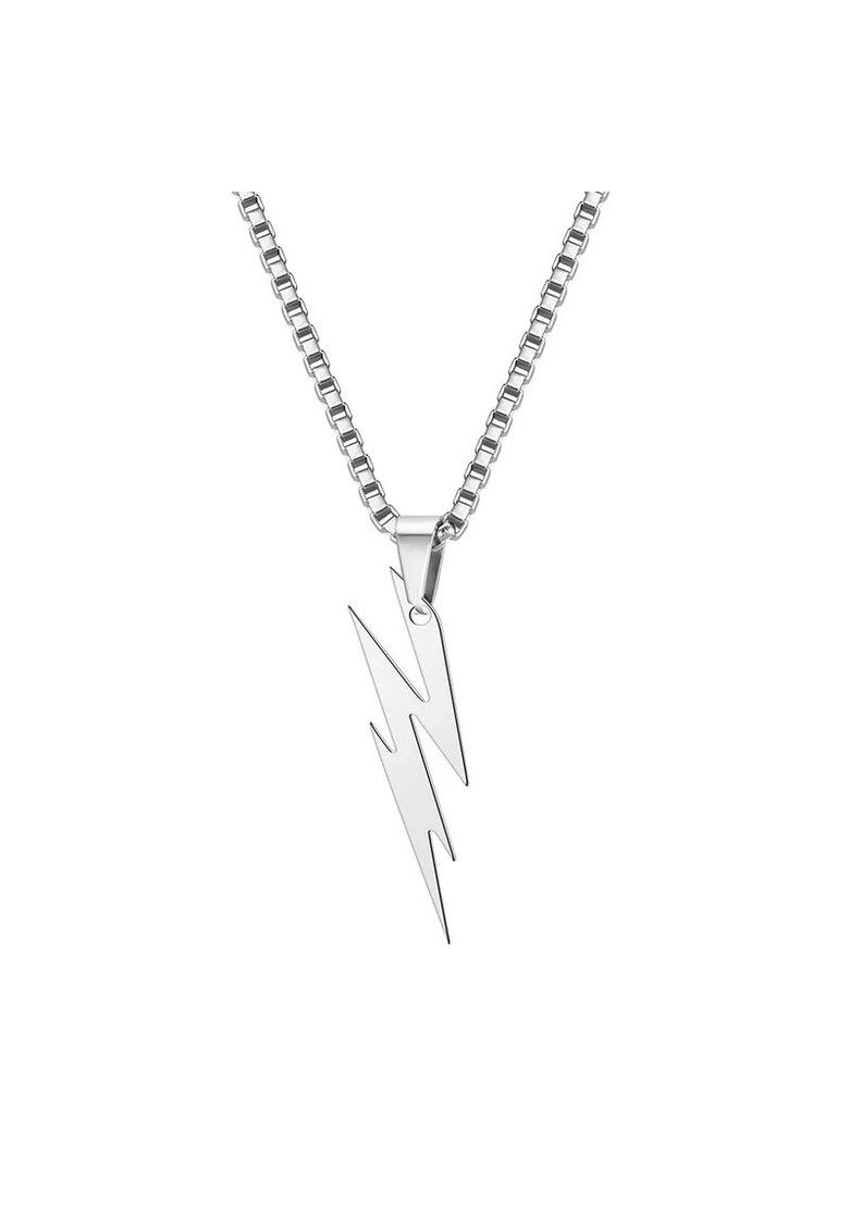 colier barbati - argintiu - din otel inoxidabil - suflat cu aur 18k - cu pandantiv fulger - pontianus c9
